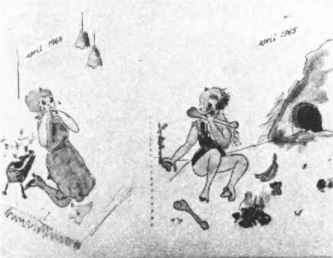 Рената у костра в образе людоедки, сварившей и пожирающей терапевта. Облизывание его берцовой кости имеет символическое значение и указывает на сосание пениса в первичной сцене. Удивленная своим бесстыдством, Рената нарисовала для сравнения сцену, символизирующую ее отношение к терапевту за год до этого сеанса.