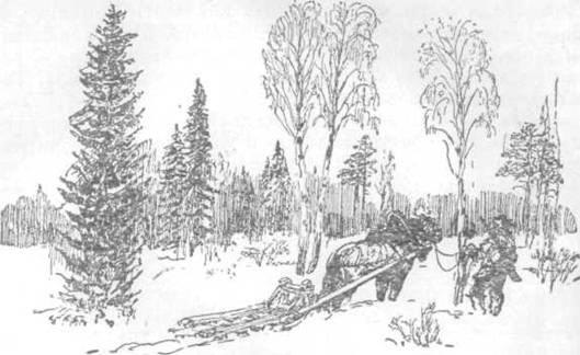 Дед тою же минутой с дровней долой, лошадь к дереву прикрутил — и за ним по следу.