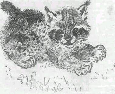 Через десять минут, сытый и довольный, рысенок крепко спал, свернувшись клубком, в своей новой постели.