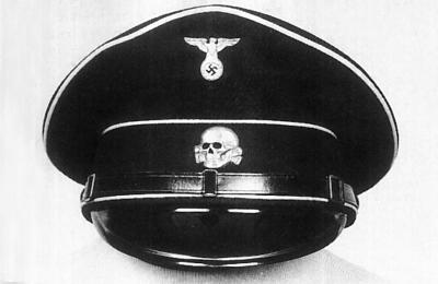 ГОЛОВНЫЕ УБОРЫ СС. С 1925 члены СС носили кепи, подобные кепи СА, но только черного цвета. На кепи членов СС были череп со скрещенными костями (мертвая голова) и круглая металлическая кокарда с концентрическими кольцами черного, белого и красного цвета. Осенью 1929 вместо национальной кокарды было введено ношение орла с распростертыми крыльями и свастикой в когтях.