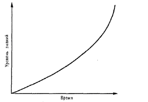 Трудными окрестило общественное мнение те языки, которые пишутся нелатинским алфавитом. Каждый, кто овладел хоть одним из таких языков, скажет, что трудность эта явно переоценена, тем более что усвоение алфавита – по сути, изучение нового, ограниченного количественно набора рисунков – относится только к первой, относительно короткой стадии изучения языка. Если мы, к примеру, изучаем русский или арабский, то кривая прогресса будет выглядеть примерно так: