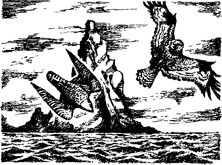 Кроудар поднял голову. В потемневшее небо поднималась дымная спираль костра, что горел на мысу. Внезапно он ощутил зверский голод. Он подумал о жене — технике Хониде, что сидела у очага там, наверху, — и о сыновьях-близнецах, которым на следующей неделе исполнится два года.
