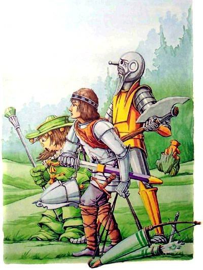 Том прыгнул на плоскую макушку своего приятеля, и пень, будто вихрь, умчался. Не успел он скрыться за деревьями, как на поляну вышли рыцарь в черных доспехах, великан людоед и могучий Мигун с молотом в руках.