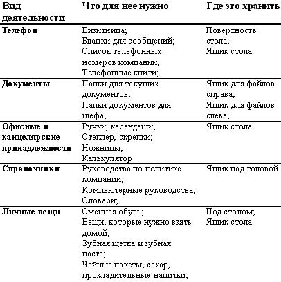 Запасы расходных материалов. Храните в своем рабочем отсеке такое количество расходных материалов, которого достаточно, по крайней мере, на две недели. Пометьте в своем календаре, когда нужно сделать новый заказ, или каждую неделю проверяйте наличие расходных материалов в центральном хранилище. Таким образом, у вас никогда ничего не закончится в критический момент; вы всегда будете на неделю впереди, если склад пора пополнить.