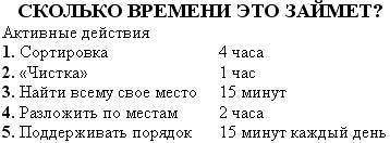 Ниже приведено среднее время, необходимое для организации рабочего отсека: