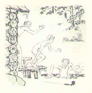Ваня вытащил железными щипцами из печи раскаленный камень и опустил в чан с водой. Белый пар плотно заполнил баньку. Стало жарко. Свен схватил веник, окунул его в кипяток и стал размахивать над Ваней. Горячая струя хлестала по телу. Прибежал Эйно, быстро разделся, пощекотал Ваню ледяными пальцами и подставил спину под веник. Парились всласть. Эйно лежал на самой верхней полке и, дрыгая ногами, визжал от восторга.