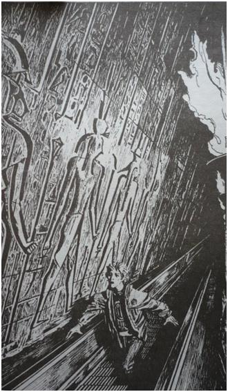 Сломя голову Атон пустился бежать. Он уже не обращал внимания на то, что ступеньки лестницы были предназначены для великана. Он понимал, что мог сорваться с высокой каменной ступеньки, но если преследователь настигнет его, с жизнью так и так придется распрощаться. То и дело Атон оглядывался назад. Как он и ожидал, расстояние между ним и преследователем увеличить не удалось, но по меньшей мере оно и не уменьшалось.
