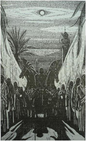 Не пытаясь уже придерживаться руками за деревянные планки, Атон отчаянно рванулся вперед. Но воин передвигался быстрее, не думая о том, как сохранить равновесие, а без оглядки несясь вслед за жертвой. Атон уже слышал его хриплое дыхание и, обернувшись на бегу через плечо, взглянул в лицо воина. Из-под капюшона уставились на него горящие из пустоты злобные глаза - лица у этого монстра не было!