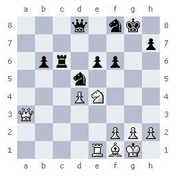 У черных уже нет защиты. На ход 44. ... Фa3, который Капабланка считал сильнейшим, последовало бы 45. Сd3+ f5 (если 45. ... Ф:d3, то 46. Фe8+, а на 45. ... Крh6 следует 46. Лc7 с угрозой мата в два хода) 46. Фe8+ Крh6 47. Лe1 Лa8 48. Л:e6+ К:e6 49. Ф:e6+ Крg7 50. Фe5+ с матом в несколько ходов.
