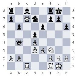 Если 17. ... Сa6, то 18. b3 Фa5 19. Кc6. Относительно лучше было 17. ... Фe8, переходя к пассивной защите, но и при этом белые выигрывали пешку ходом 18. Кc6, сохраняя подавляющий позиционный перевес.