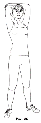Мягко и аккуратно потяните локоть влево за голову (рис. 36). Удержите на 10 счетов и вернитесь в исходное положение. Повторите упражнение 7-12 раз для каждой руки.