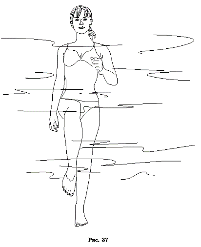Начните бег – движения рук и ног такие же, как и при беге на суше. Высоко поднимайте бедро и ставьте ногу на всю стопу (рис. 37).