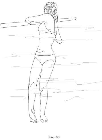 Начните выполнять скручивающие движения нижней частью тела (рис. 38). Живот сохраняется втянутым, а грудная клетка – приподнятой.