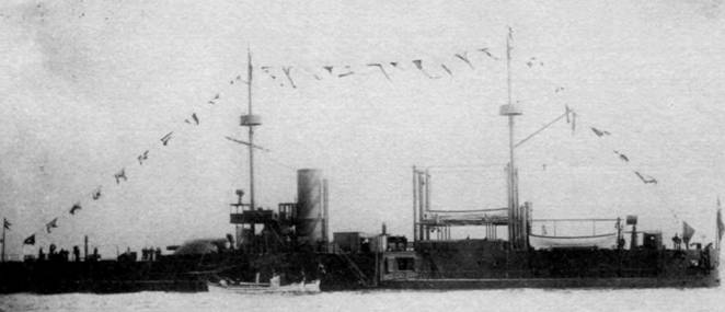 В 1880 г. в Копенгагене спустили на воду небольшой (водоизмещением всего 2421 т) береговой броненосец «Tordenskjold». Его вооружили одним 355-мм и четырьмя 120-мм орудиями. Самым старым броненосцем в датском флоте был монитор «Рольф Кракке», построенный в 1863 г., еще во времена Гражданской войны в США. Он представлял собой типичный двухбашенный монитор Эриксона, но с добавлением легкого парусного вооружения. Имея водоизмещение 1344 т, он нес в своих башнях по одному 203-мм орудию. В 1864 г. на воду спустили бортовой броненосец «Danmark» в 4747 т с восьмью 203-мм и двенадцатью 152-мм дульноза- рядными орудиями. Затем в 1868 и 1870 гг. на воду сошли мониторы «Eindormen» и «Gorm». На вооружении первого находились два 229-мм, второго — два 254-мм дульнозарядных орудия. Их водоизмещение соответственно равнялось 2076 и 2344 т. Эти несколько лет оказались для флота Датского королевства весьма значительными. Так в 1872 г., т. е. спустя два года, на воду сошел новый башенный броненосец среднего водоизмещения (3083 т). Он получил имя «Odin». Вооружили его четырьмя 254-мм и четырьмя 87-мм орудиями. Последующие шесть лет броненосцев Дания не строила. И лишь в 1878 г. на воду сошел уже описанный нами «Гельголанд». В дополнение к этим 7 броненосцам в составе датского флота находилось еще 18 боевых кораблей различных классов и 6 миноносцев.