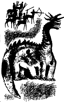 И тут появились «кентавры», вооруженные луками. На чудовище посыпался дождь стрел. Зверь бросился на охотников. Они увертывались от него с поразительной ловкостью, движения их были точны и грациозны, а в скорости бега они превзошли бы любого скакуна. Кстати, только это их и спасало: чудовище оказалось на удивление подвижным для своего веса. Затаив дыхание наблюдали мы за этой сценой эпической охоты, не решаясь вмешаться. Да и стрелять было рискованно, потому что охотники вихрем кружились вокруг своей добычи. Я уже собирался дать приказ продолжать движение, когда произошло несчастье. Один из «кентавров» поскользнулся. Зубастая пасть сомкнулась над ним и перекусила его пополам.