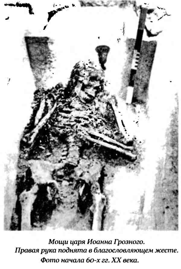 Каждому хорошо известно, что руки покойным при положении во гроб складывают на груди крестообразно. Таинственно воздетая (в уже закрытом гробе!) благословляющая десница — может быть, загадка более значимая, чем месторасположение знаменитой царской библиотеки.