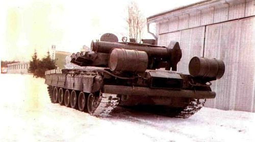 Всего в топливной системе (в наружной и внутренней группах) 13 баков. На правой и левой надгусеничных полках расположены 5 баков (2 — на правой и 3 — на левой). Внутри машины баки установлены практически по всему периметру корпуса, опоясывая боевое отделение. В передней части установлены передний левый и передний правый баки и бак-стеллаж. В баке-стеллаже уложены боеприпасы (вариант так называемой мокрой боеукладки). Далее, по часовой стрелке, располагаются средний правый (в боевом отделении), правый, кормовой и расходный баки (в моторно-трансмиссионном отделении) и левый средний (в боевом отделении). Таким образом максимально эффективно использован