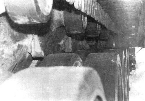 Система управления работой двигателя также существенно отличается от систем известных дизельных двигателей. Она состоит из механического привода подачи топлива и гидросервопривода регулируемого соплового аппарата (РСА). Управление подачей топлива может осуществляться педалью или рукояткой сектора ручной подачи. Однако пользуются этими приводами ограничено, как правило, лишь для установки определенного режима подачи топлива. Управление же разгоном и торможением двигателя осуществляют с помощью РСА. Он представляет собой поворотные лопатки в проточной части двигателя перед рабочим колесом свободной турбины. За счет поворота лопаток РСА обеспечиваются торможение машины двигателем, регулирование частот вращения свободной турбины (через редуктор соединена с трансмиссией) во время движения танка, а также предотвращение разноса ротора турбины в момент переключения передач.