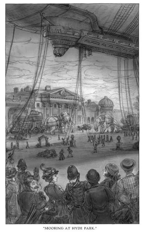 Тацца радостно прыгал, восхищенно глядя на суматоху, царящую на взлетном поле. Под «Левиафаном» в ожидании стояли две элефантины, одна впряженная в повозку, другая — в бронированный фургон. Констебли с трудом сдерживали огромную толпу зевак.