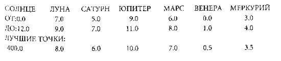 Итак, мы имеем два варианта для отождествления Юпитера и Сатурна и два – для Венеры и Меркурия. Итого – четыре варианта отождествления планет на зодиаке LV (см. рис. 1.6). Приведём данные для программы HOROS для всех четырёх вариантов. По поводу определения упоминаемых ниже «лучших точек», служащих для приблизительного указания мест идеального соответствия планетных расположений с зодиаком, см. раздел 5.11 в [НХЕ]. Положения планет указаны по нижеприведённой циклической «шкале созвездий» (подробности см. в разделе 5.10 в [НХЕ]). Саму программу HOROS и описание того, как ею пользоваться, можно скачать с нашего сайта в интернете: chronologia.org.