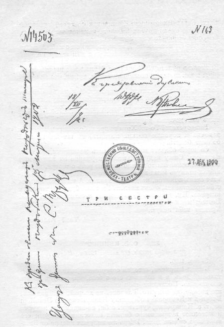 «Три сестры». Цензурный экземпляр первоначальной редакции с резолюциями цензоров