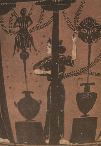 Так нам из пышного храма изрек Аполлон-дальновержец, Златоволосый наш бог, с луком серебряным царь: «Пусть верховодят в совете цари богочтимые, коим Спарты всерадостный град на попечение дан, Вкупе же с ними и старцы людские, а люди народа, Договор праведный чтя, пусть в одномыслии с ним Только благое вещают и правое делают дело, Умыслов злых не тая против отчизны своей, — И не покинет народа тогда ни победа, ни сила». Так свою волю явил городу нашему Феб.Женщина у источника. Деталь афинской гидрии (конец VI в. до н. э.). Лондон, Британский музей.