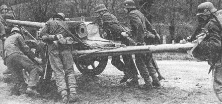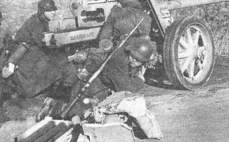 Солдаты Вермахта перетаскивают 75-миллиметровое противотанковое орудие 40 L/46