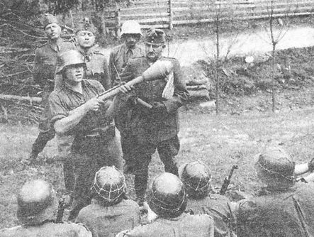 Немецкий инструктор обучает венгерских солдат обращаться с Панцерфаустом