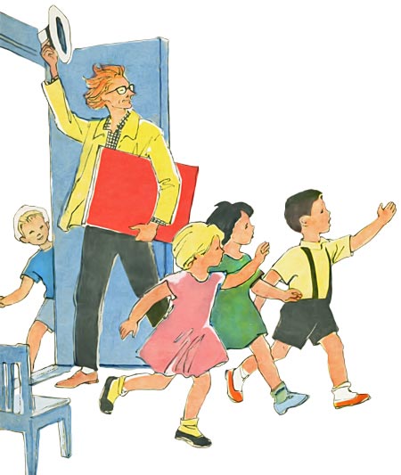 — Здравствуйте, товарищ Хитрюшкин. Мы только что закончили работу. Мы исправляли ваши ошибки. Теперь на каждой картинке сделана правильная надпись. Можете посмотреть.