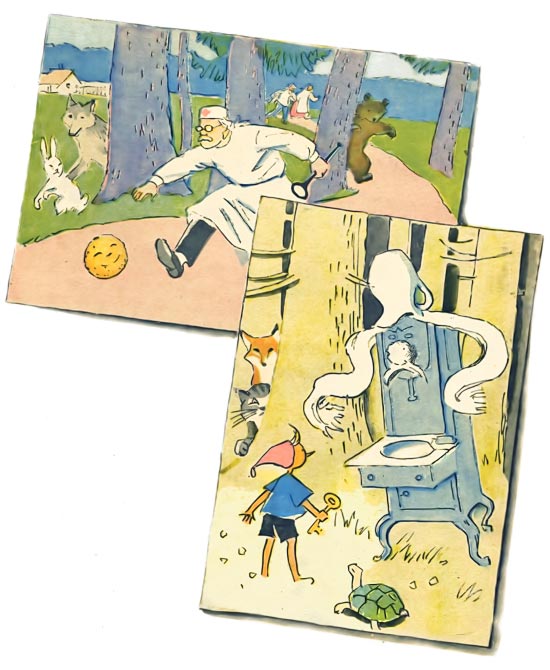 — Бедный Хитрюшкин! — сказала она. — Прочёл залпом шесть сказок, и в голове у него всё перепуталось. Посмотрите внимательно на эти картинки, тогда вы догадаетесь, что за сказки прочёл Хитрюшкин.