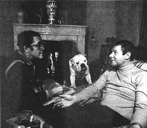 Мы с Виталием Соломиным у меня дома обсуждаем сценарий. Между нами — участник сериала мой пес Бамбула.