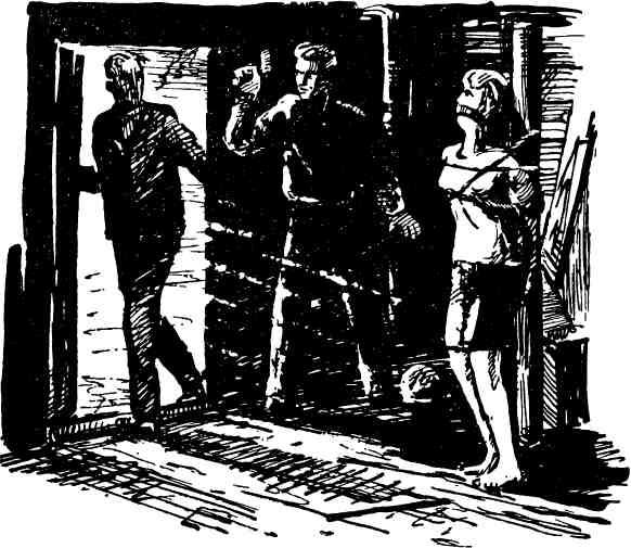 Он нагнулся и что-то вытащил из угла. Спустя несколько секунд появился, таща большой камень. Бросил его около девушки и отряхнул руки.