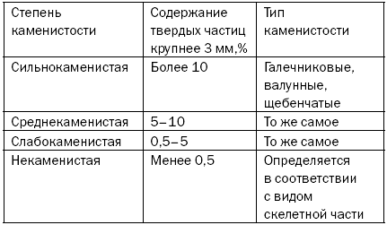 Классификацию разновидностей почв можно также проводить на основании, например, степени их каменистости. Первая такая систематизация была представлена в середине XX века Н.А. Качинским (табл. 5).