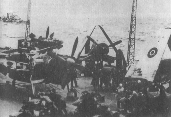 Неуклюжие Фэйри «Барракуды» на палубе авианосца «Фьюриес» готовятся к взлету.