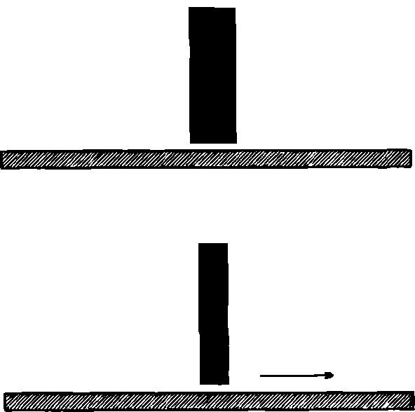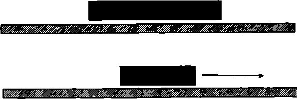 Н: Неверно. В самом деле, из преобразований Лоренца следует, что движущийся стержень сокращается в направлении движения и сокращение тем больше, чем больше скорость. Чем быстрее движется стержень, тем короче он оказывается. Но такое сокращение происходит только в направлении движения. На рис. 64 вы видите стержень, который сокращается до половины своей первоначальной длины, когда он движется со скоростью, приближающейся к 0,9 скорости света. Однако в направлении, перпендикулярном к движению, сокращения нет, что я и постарался проиллюстрировать на рис. 65.
