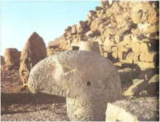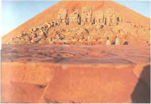 Но что же гробница Антиоха? Летом 1989 года археологи и геофизики из Вестфальского музея в Мюнстере провели на горе исследования с использованием измерительных приборов. С помощью магнитометров и сейсмометров удалось выяснить, что насыпь из щебня на вершине горы состоит из трех различных слоев. Древние строители две с лишним тысячи лет назад высекли в скале уступы, дабы щебень не соскальзывал вниз.
