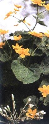 В начале мая по берегам водоёмов, особенно на сырых лугах, полыхают, горят жарким золотом цветы калужницы болотной – хоть церковные купола этим золотом мажь. Не зря, наверное, в народе калужницу прозвали жарки.