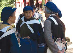 В Лицзяне и окрестностях живет более 20 разных народностей, но большинство жителей Лицзяна принадлежат к народности наси (Naxi). «На» означает «уважаемый», «Си» — «люди». Уважаемые люди. Узнать их можно сразу по традиционной одежде: обычно женщины носят свободные штаны, платье с широкими рукавами, чаще синее, поверх которого надет передник или черная куртка. На спине у них часто накидка из овечьей шерсти с семью вышитыми дисками, символизирующими семь звезд. Накидка нужна, чтобы корзинка за плечами не натирала спину. В корзинках носят все — детей, овощи, белье, даже кирпичи. К корзине пришиты лямки и надевается она как обычный рюкзак. Часто корзинки расшивают разными узорами, и они довольно красивые. На голове замужние наси носят круглую кепку, а незамужние заплетают косы кольцaми и носят платок или шляпу из черного вельвета.