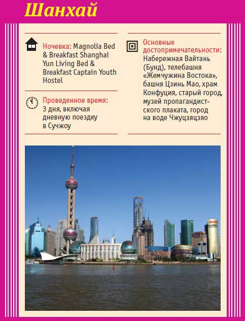 Шанхай — город, который мало кого оставляет равнодушным. За свою богатую событиями историю Шанхай сменил множество прозвищ, как только его не называли: Париж Востока, Королева Востока, Китайская Блудница, город авантюристов, игроков, матросов, торговцев опиумом и опиумных наркоманов, город детской проституции и рабского детского труда, родина Коммунистической партии Китая, колыбель Революции и родина Шанхайской коммуны. Сегодня это огромный, самый густонаселенный во всем Китае мегаполис, где современные небоскребы органично сочетаются с узенькими улочками старого города, стеклянные торговые центры с древними храмами.