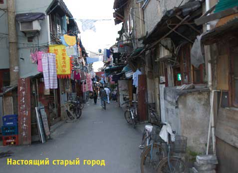 Если пойти дальше на юг, то туристская часть скоро закончится и начнется настоящий старый город — узенькие улочки, обшарпанные одно-двухэтажные дома с развешанным всюду бельем. На первых этажах обычно расположены мастерские, игорные дома, лавки, массажные салоны и закусочные. Везде снуют велосипедисты. На краю тротуаров дымятся жаровни и деревянные кадки, откуда-то доносится аромат благовоний, смешанный с запахом соевого соуса и мяса. Это тот Шанхай, каким он был на протяжении столетий, и который стремительными темпами уходит в прошлое, уступая дорогу широким площадям и небоскребам. Чтобы увидеть настоящий старый Шанхай, стоит поторопиться, еще немного — и он останется лишь на фотографиях да на одной-двух сохраненных для туристов улочках.
