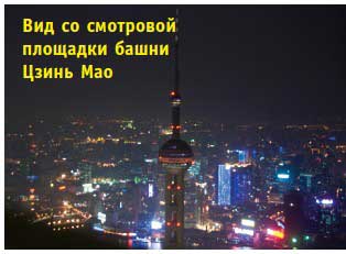 Вечером поедем в Пудун (Pudong), район с небоскребами, которым мы любовались днем с набережной Вайтань. Одно из самых красивых зданий Пудуна это телевизионная башня «Жемчужина Востока» (Oriental Pearl). Одиннадцать сфер (жемчужин) и три гигантские колонны, кажется, соединяют землю с облаками. На верху башни находится смотровая площадка. Но самое впечатляющее в башне — это контролируемая компьютером подсветка, меняющаяся в зависимости от погоды и от времени суток.