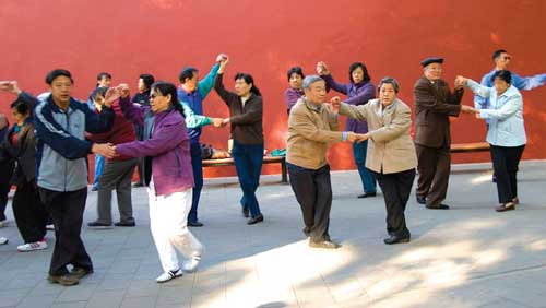 На одной из площадок парка по утрам группы китайцев занимаются тай-цзи, все желающие могут к ним присоединиться. На соседней площадке — уроки бальных танцев, китайцы, в основном, пожилого возраста танцуют вальс, танго, делают замысловатые дорожки шагов и что-то еще. Выглядит это очень профессионально.