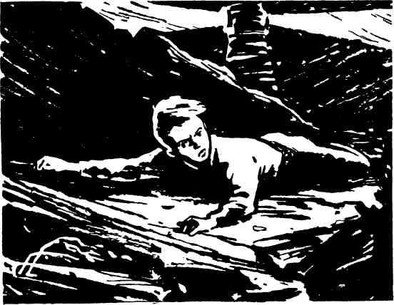 Быстро темнело. Ураган не стихал. Потоки воздуха все увеличивали скорость. Костя понял, что, лежа на камне, он долго не продержится. Устанут руки, и ветер снесет его с гребня мыса на острые камни на берегу лагуны. И мальчик стал сантиметр за сантиметром двигаться под прикрытие базальтового барьера. Ему помогала трещина, она то суживалась, то расширялась. Было удобно упираться руками в ее надежные края.