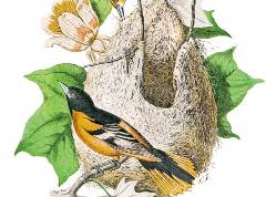 На приложенном рисунке изображен один из самых известных и красивых видов, балтиморская птица. В верху самка, внизу старый самец.