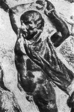 По словам Плутарха, на щите Афины Фидий «представил самого себя в виде плешивого старичка, поднимающего камень обеими руками».