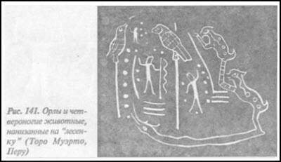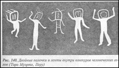 Чтобы покончить с этим рядом примеров, поддерживающих мою гипотезу, я отмечу еще один символ, широко распространенный, всегда присутствующий на рисунках в гротах и пещерных стоянках Нового Света — например, в Восточных Андах Колумбии, в Венесуэле, на Антильских островах, а также на Кубе. На Кубе были найдены два его варианта, сфотографированные Антонио Нуньесом Хименесом и опубликованные в работе: «Куба»: наскальные рисунки».