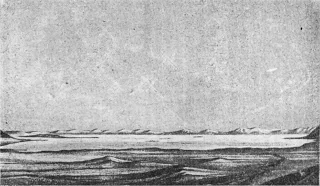 Вид озера Куку-нор зимой. Рис. Роборовского.