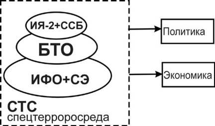 В результате взаимодиффузии и глубокого смешивания агентур спецслужб и террора в рамках "общего дела" – крайне важным приобретением терроризма на этом этапе развития оказывается возможность легально влиять не только на экономический сектор, но и на государственную политику (рис. 6).