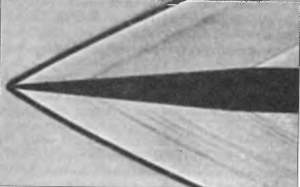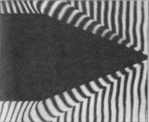 …Но вернемся в Германию военных лет. Помимо методики теневой съемки, там была создана и уникальная для своего времени установка интерферометрии, позволявшая визуализировать распределение плотности в обтекающем тело воздушном потоке (рис. 2.30). Наложение световых волн от двух источников приводило к чередованию максимумов и минимумов освещенности, а изменение плотности нарушало эту картину, поскольку менялся показатель преломления. Получить такой снимок в дачных условиях значительно сложнее, чем теневой…