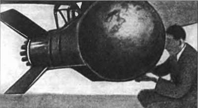…Германское управляемое оружие заявило о себе весьма громко: осенью 1943 года радиоуправляемыми авиабомбами запущенными с самолетов, были тяжело повреждены американские крейсера «Филадельфия», «Саванна», британские линкор «Уорспайт» и крейсер «Уганда», однако «венцом» явилось потопление нового итальянского линкора «Рома» (водоизмещение 46000 т, 9 орудий калибром 381 мм) 9 сентября 1943 г. К тому времени Муссолини был арестован, правительство Италии вело переговоры о мире, а итальянский флот шел на Мальту сдаваться англичанам, что, конечно, не могло быть расценено недавними партнерами по оси иначе как предательство. В 15–40 на высоте 5 км, были замечены самолеты. Вероятность попадания в идущий 20-узловым ходом корабль свободнопадающих бомб, сброшенных с такой высоты, пренебрежима, поэтому особой тревоги самолеты не вызвали. Однако в 15–41 в палубу линкора попала почти вертикально падавшая управляемая бомба SD-1400 (рис. 2.40), пробившая насквозь корпус корабля и разорвавшаяся в воде под котельными отделениями. Экипаж своевременно начал борьбу за живучесть, но через 10 минут последовало второе попадание, в результате которого сдетонировали погреба боезапаса, что оказалось фатальным для линкора. Погибли 1500 членов экипажа, в том числе — командовавший объединением адмирал.